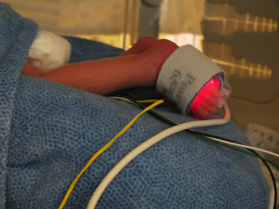 We had a good day today. Brant is up to 3 pounds 4 ounces. Today they decided to give him bolus feedings instead of constant feedings. So what that means is instead of there being a constant flow of milk through his feeding tube he will now be getting 3 hours worth of milk in 2 hours, so he has an hour break each time where the feeding tube is disconnected from the pump. He will have to prove that he can handle that amount for I believe they said 4 days. After he proves himself then it will go to 3 hours worth of milk in 1 hour, then he'll get a drip bag of milk in his isolette that would be done in 20-30 minutes. So his cares are now every 3 hours rather than 4.